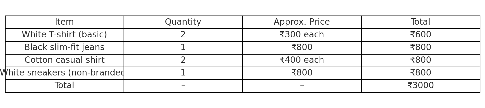 💰 With just ₹3000, you can build a basic, versatile wardrobe for college, casual outings, and even semi-formal events.